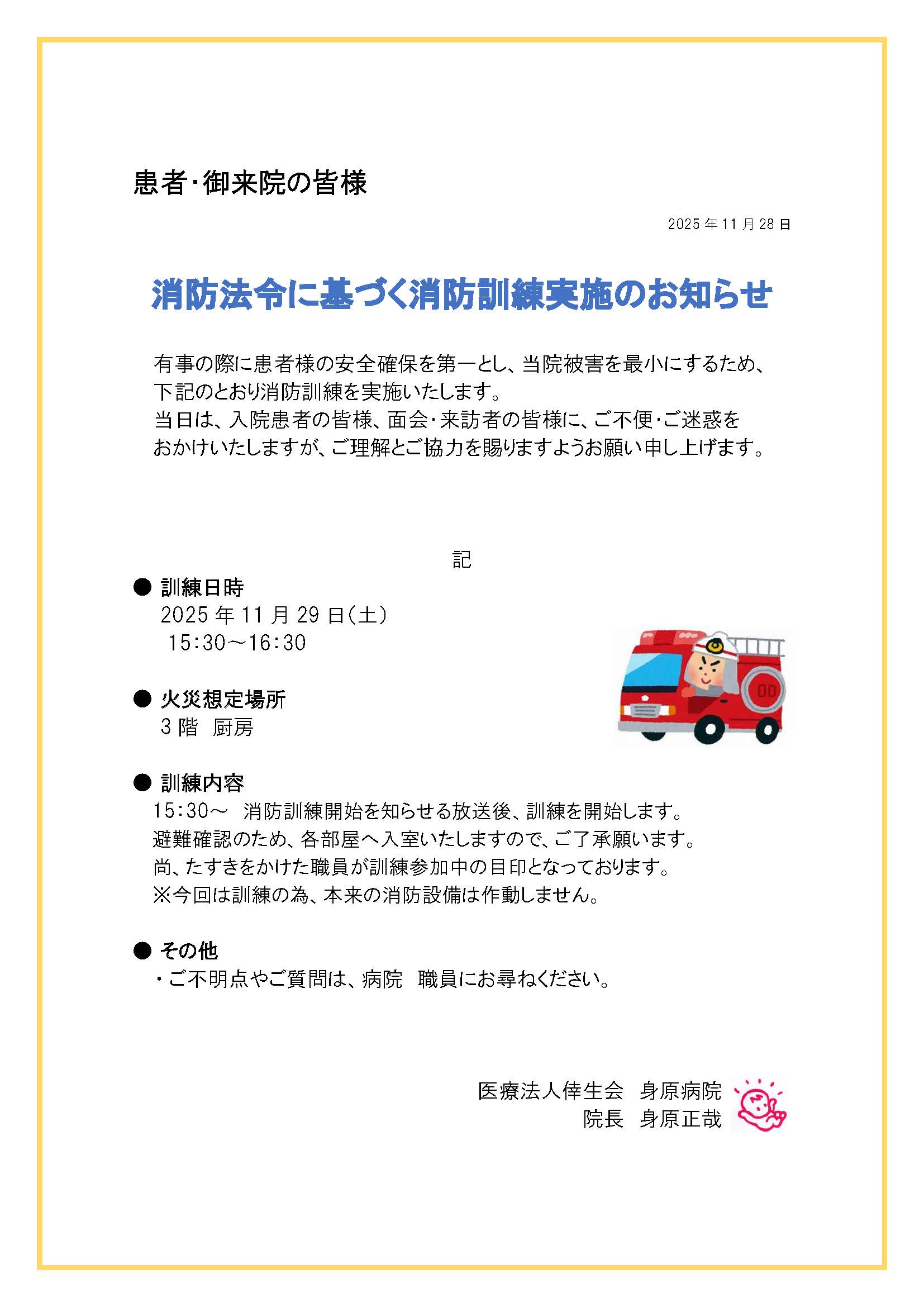 消防法令に基づく消防訓練実施のお知らせ