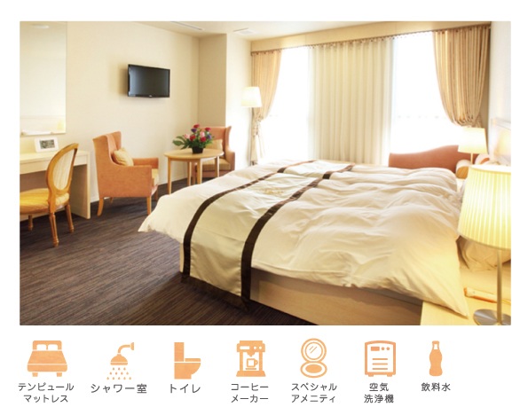 病室のご紹介病室は、手術後の管理病室(2床室)を除いては全室個室、シャワー・トイレ付となっております。入院中もアットホームに過ごして頂けるように配慮し、医療専門の設計士と産婦人科に特化した女性デザイナーが手掛けたゆったりと過ごして頂けるお部屋となっております。 病室の詳しいご紹介は、以下リンクをクリック下さい。 | ||||||||||||